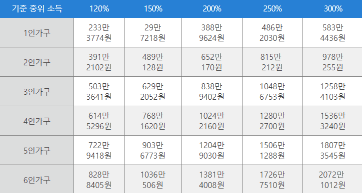 중위소득 을 통해 다양한 복지 정책을 지원 받을 수 있습니다. 중위소득 기준 소득 금액은 매년 5% 가량 올라 기존에 소득금액이 기준에 미달하여 지원받지 못하였다면 매년 중위소득표를 다시 확인하여 중위 소득별 복지 혜택 적용되는지 확인하시고 혜택을 누리셔야합니다.